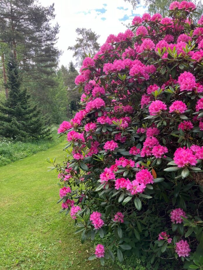 Voit leikata kukinnan jälkeen kuivuneet kukkaperät pois alppiruusujen oksilta. Näin pensaat eivät lähde tuottamaan siemeniä. Se ei kuitenkaan ole välttämätöntä, eikä aina mahdollistakaan vanhempien alppiruusujen suuren koon vuoksi. Kukkia kyllä kehittyy! Siitä todisteena tuo pääkuva pinkkien kukkien täyttämästä suuresta alppiruususta. Alppiruusuille sopii syyslannoitteeksi Puutarhan Syksy rakeisena tai kasteluravinteena. Uudet kukkanuput kehittyvät jo syksyllä, joten ravinteet pitää antaa hyvissä ajoin elokuussa.