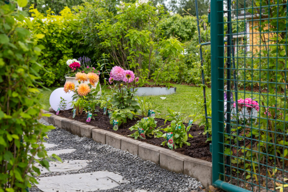 Polku viimeisteltiin GreenCare Harmaalla koristekivellä, joka tuo siistin ja yhtenäisen ilmeen kulkuväylälle. Koristekivi on samalla helppohoitoinen ratkaisu, sillä se pitää rikkakasvit kurissa ja pysyy ryhdikkäänä vuodesta toiseen.