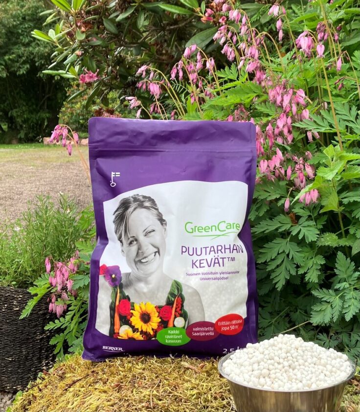 Täyslannoitteella eli mineraaleja sisältävällä lannoitteella saat nopean vaikutuksen ja tehon. Täyslannoitteella käynnistät kevään kasvun nopeimmin. Ensimmäiseen lannoitukseen keväällä on paras GreenCare Puutarhan Kevät tai uusi Puutarhan Kevät Luomu. Ne ovat tasapainoisia, riittoisia ja turvallisia täyslannoitteita kaikille puutarhan kasveille