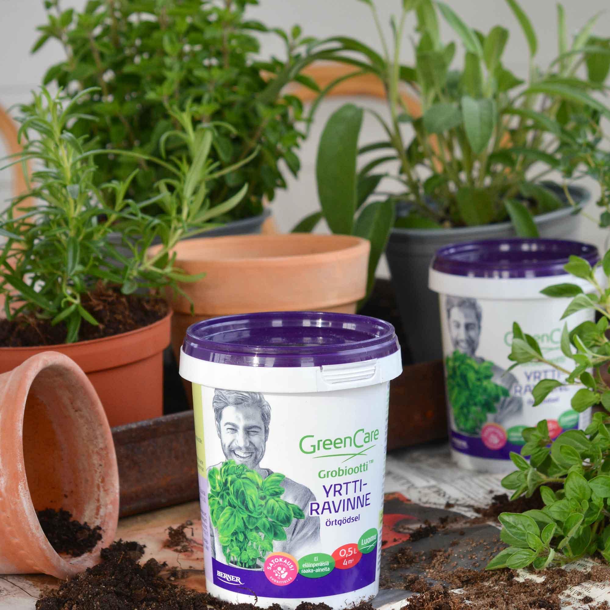 GreenCare Grobiootti Yrttimulta on luonnonmukainen erikoismulta puhtaiden yrttien kasvattamiseen. Kasvattaa maukkaat yrtit ja pidentää kaupan ruukkuyrttien käyttöikää.