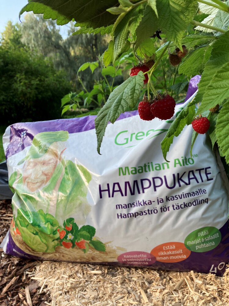 Maatilan Aito Hamppukate on Vuoden 2025 Puutarhatuote! Puhdas ja ekologinen, luonnonmukainen kate sopii muovittomaan rikkakasvien torjuntaan puutarhassa.