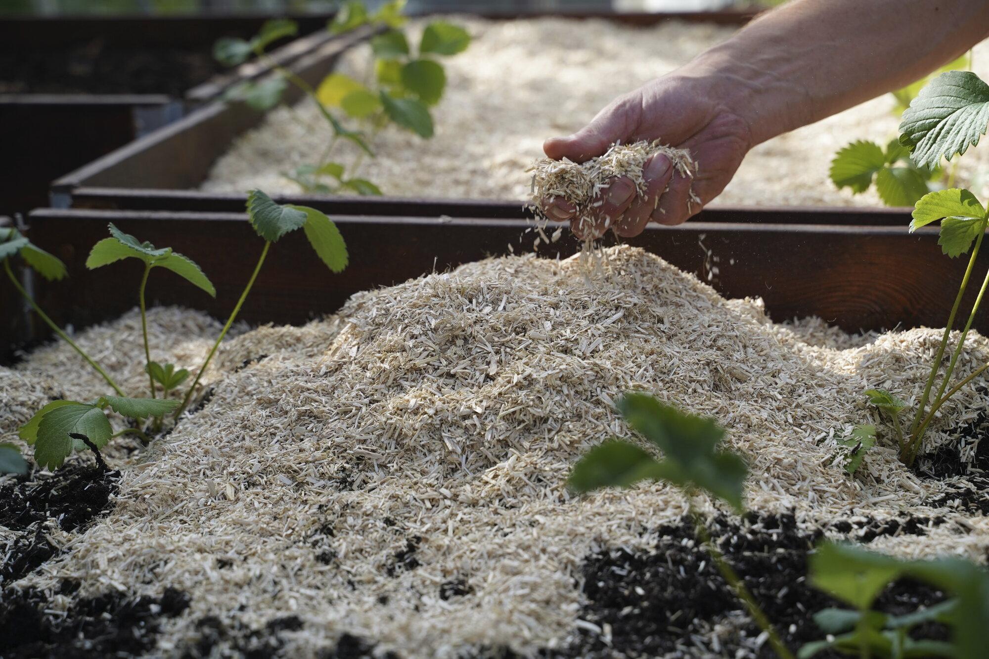 Syksyllä katteen voi kääntää mullan sekaan maanparannusaineeksi.