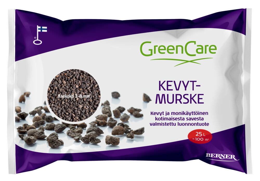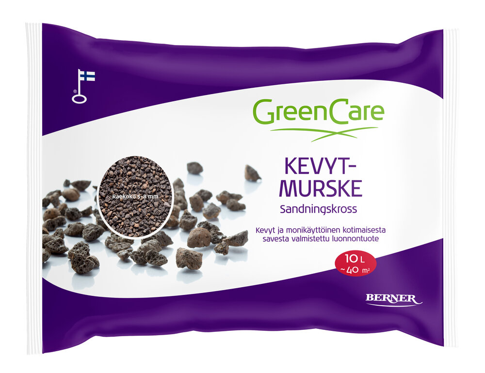 GreenCare Kevytmurske on monikäyttöinen ja ympäristöystävällinen vaihtoehto liukkaudentorjuntaan, talvihiekoitukseen ja sopii myös puutarhan maanparannukseen. Kotimaisesta savesta poltettu kevytsora (Leca) on luonnontuote ja suunniteltu parantamaan kulkuväylien turvallisuutta liukkailla keleillä.