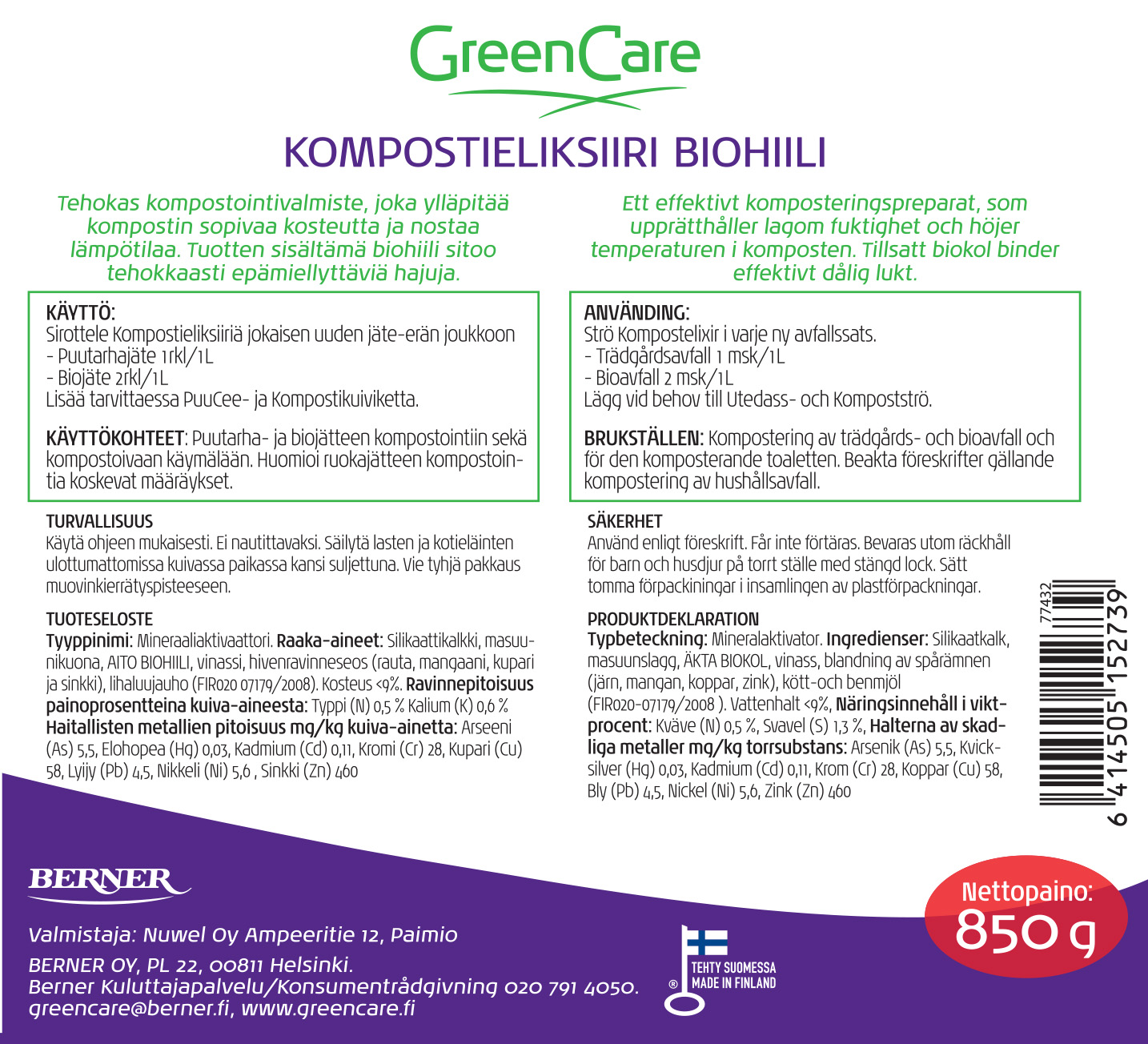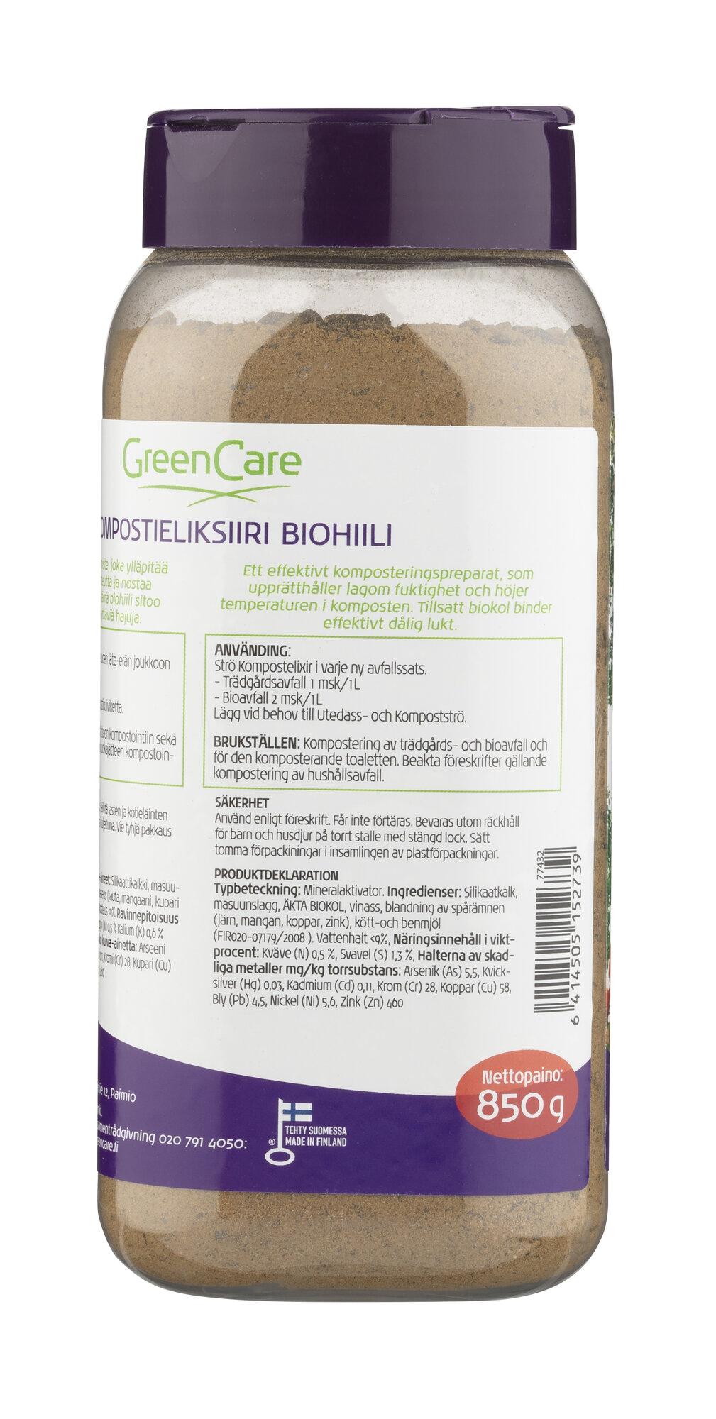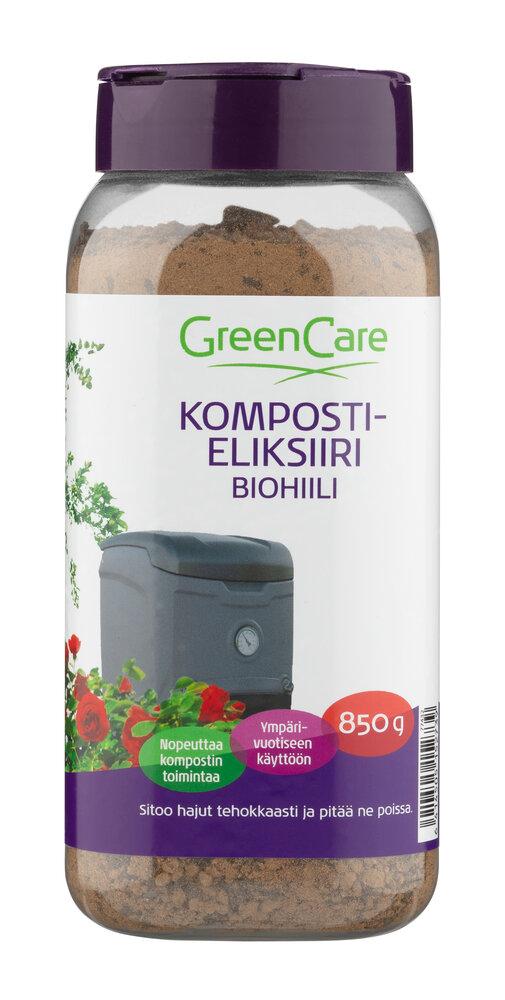 GreenCare Kompostieliksiiri Biohiilellä nopeuttaa kompostointia ja sitoo hajut tehokkaasti. Tekee kompostoinnista helppoa ja hajutonta.