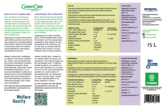 Raaka-aineet: 100 % hygienisoitu luomukanan lanta (FIO002-06406/2019)