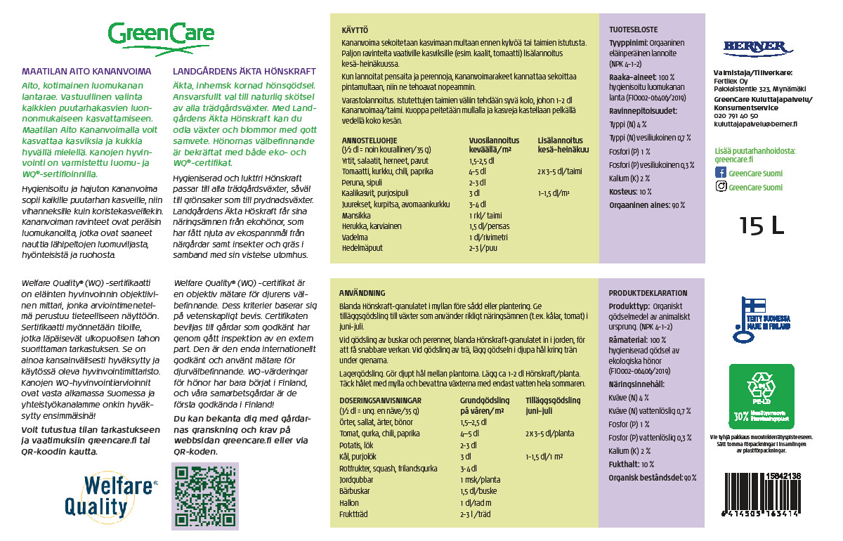 • Kananvoima on orgaaninen lannoite, joka sopii kaikille kasveille