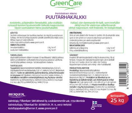 GreenCare Perinteinen Hieno Puutarhakalkki on pölyämätön, kostutettu suomalainen hienokalkki. Liukenee nopeasti, vähentää happamuutta ja parantaa kasvien ravinteiden käyttöä.