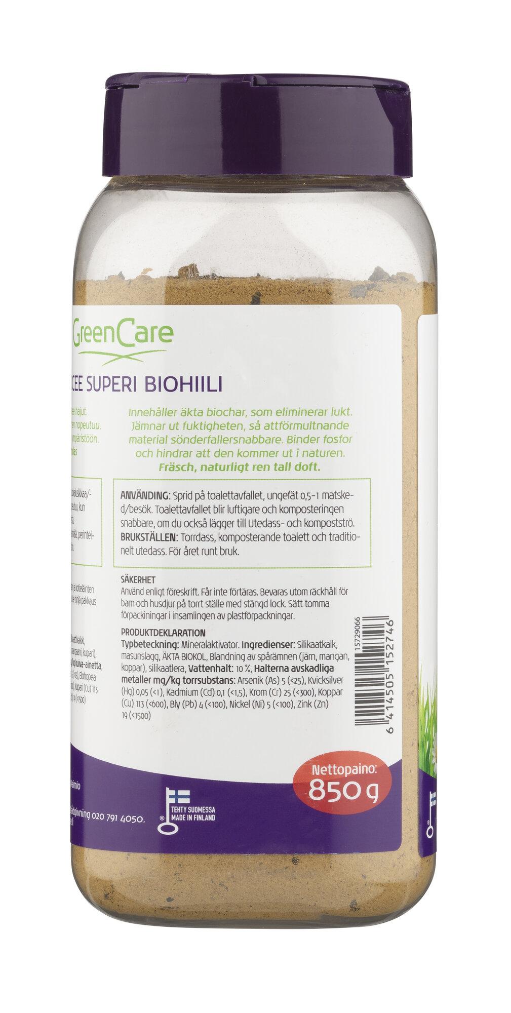 PuuCee Superi Biohiili on ominaisuuksiltaan hyödyllinen sekä luonnolle että puuceen käyttäjälle. Se sitoo fosforia ja estää sen tahattoman valumisen ympäristöön ja tekee myös käymäläjätteestä paljon helpommin käsiteltävää. Ympärivuotinen käyttö on suositeltavaa. Valmis käymäläjätteestä valmistettu kompostimulta, soveltuu hyödynnettäväksi koristekasveille.
