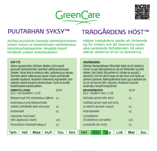 Tuote sopii kaikille puutarhakasveille – niin omenapuille, marjakasveille kuin koristekasveillekin – ja varmistaa vahvan startin seuraavan kasvukauden kukintaan ja satoon.